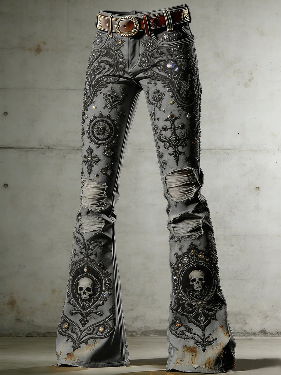 Kvinnors gotiska skull konst utskrift flasad byxor